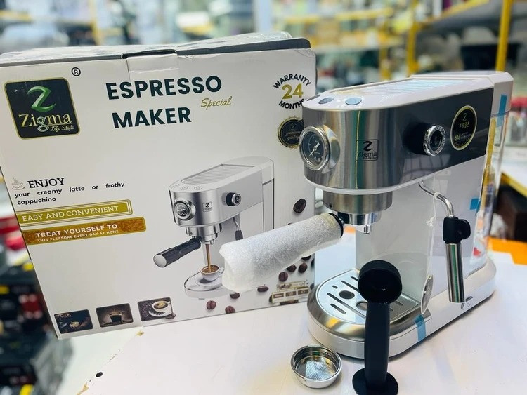 این دستگاهی که در تصویر میبینید یک اسپرسوساز خانگی مدل EM-42B از برند Zigma هست. طراحی اون جمعوجور و زیباست و برای استفادهی خانگی و حتی محیطهای کوچک مثل دفتر کار مناسبه.