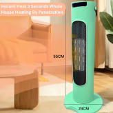 این هیتر با المنتهای سرامیکی PTC کار میکند که هم ایمنتر هستند و هم سریعتر گرما تولید میکنند. طراحی عمودی و پایهدار آن باعث میشود فضای زیادی اشغال نکند و بهراحتی در گوشه اتاق قرار بگیرد.