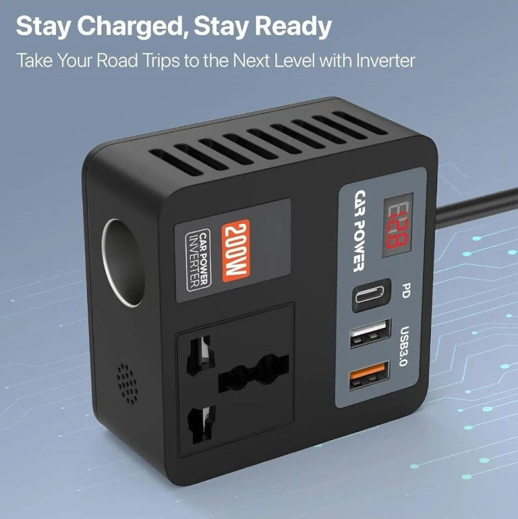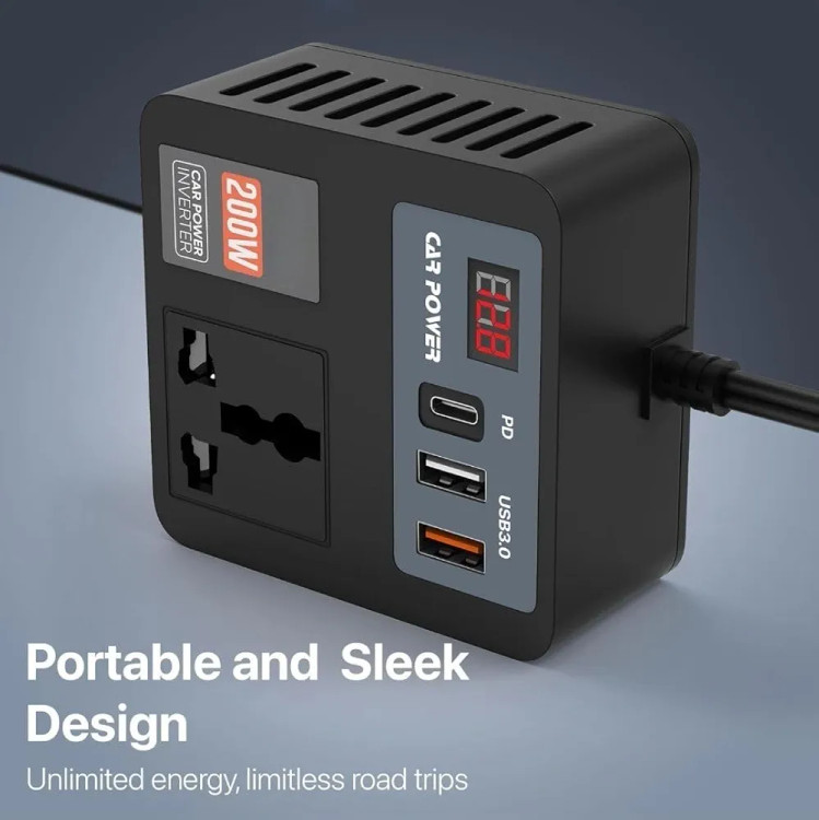 ⚡ تنظیم ولتاژ پیشرفته: این اینورتر قدرت ۲۰۰ واتی که با مدیریت هوشمند ولتاژ ساخته شده است، خروجی ثابت و قابل اعتمادی را ارائه میدهد - ایدهآل برای تغذیه لپتاپها، لوازم خانگی کوچک، سیستمهای بازی و موارد دیگر. ورودی ۱۲ ولت DC از وسیله نقلیه شما را به خروجی ۲۲۰ ولت AC تبدیل میکند، با جریان کلی تا ۹.۶ آمپر.
