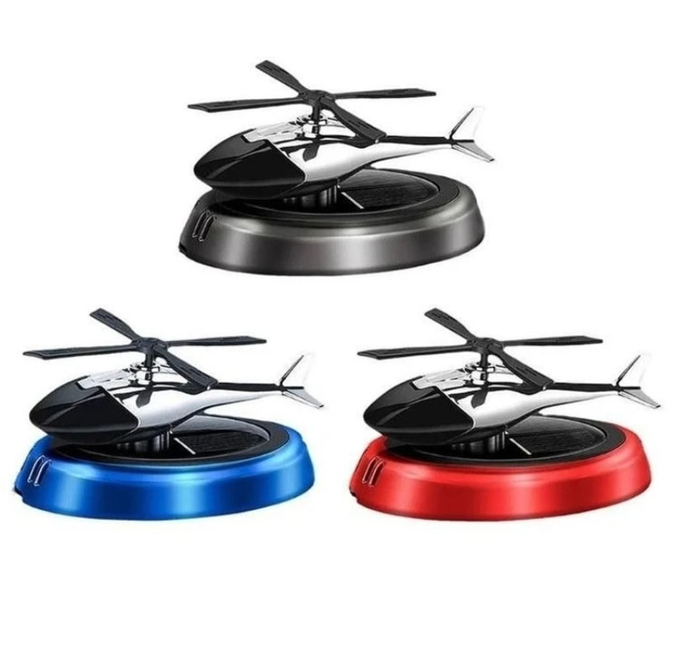 خوشبو کننده خورشیدی مدل هلیکوپتر علاوه بر خوشبوکننده بودن یک وسیله تزئینی باحال و جذاب برای داخل خودرو میباشد و این محصول با قرار گرفت در زیر نور خورشید به چرخش در میآید و بوی خوشایندی رو داخل کابین پخش میکند. راحیه این محصول قابل شارژ میباشد و شما میتوانید به صورت جداگانه هر ادکلن و راحیه خوشبو و ملایم رو برای این محصول استفاده کنید. انرژی محرک این خوشبو کننده خودرو خورشیدی از خورشید تولید می شود و نیاز به شارژ ندارد.